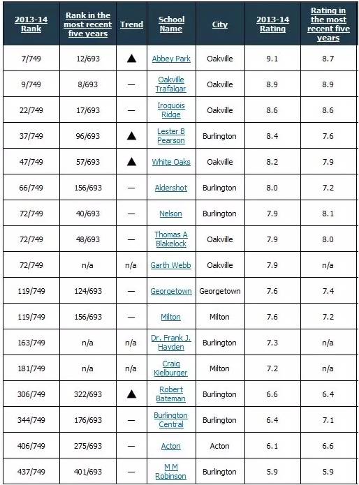 在该教育局的学校中,位于Oakville市中心的white oaks学校有IB课程,另外Abbey Park, Oakville Trafalgar, Iroquois Ridge中学有多种AP课程。可以提供给优秀的中国学生提前修读大学学分的机会。其中White oaks, Burlington Central和T.A Blakelock中学提供全级别语言课程可以接受语言中级或以下的孩子。其他学校只有高级(4,5级)英语课程。以下是哈尔顿公立教育局高中的2015年最新Fraser 排名,仅供参考。
