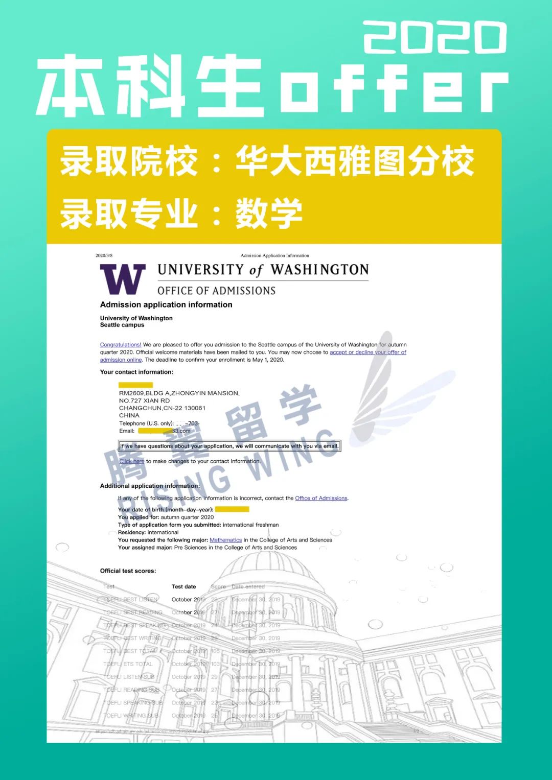 华盛顿大学(University of Washington),简称UW,始建于1861年,位于美国西海岸西雅图,是世界著名的顶尖研究型大学,AAU和环太平洋大学联盟成员.建校以来,华盛顿大学及其校友创做出无数造福全人类的重大发明:发明了乙肝疫苗、肾透析术,绘制了人类基因图谱,揭示了生命奥秘,主持设计了世界上最大的波音747客机、月球轨道飞船和哥伦比亚航天飞机,培养了11位太空宇航员,发明了乙烯合成橡胶技术,参与了NASA宇宙飞船探月研究项目,开发了计算机DOS操作系统等等。