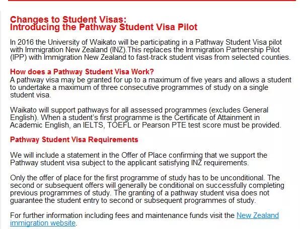 近期,新西兰移民局即将实施打包签证政策,相信大家都有所耳闻,但是具体实施细节还没有落实。今天,怀卡托大学官方通知,对pathway打包签证做了如下具体说明。